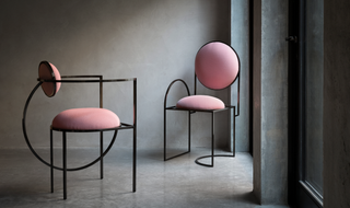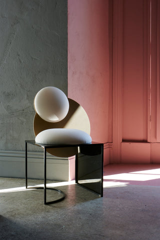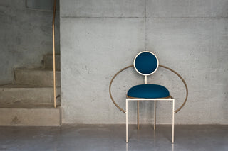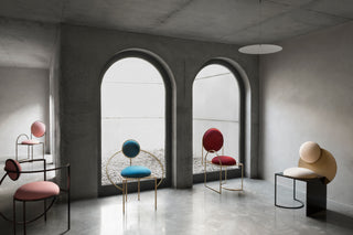 Finding inspiration in planetary orbits, whose gravitationally curved trajectories drive the lines and shapes of the designs. Constructed from thin square metal rods, the designs play with circles and straight lines to create pieces that are delicate, light but complex.