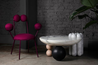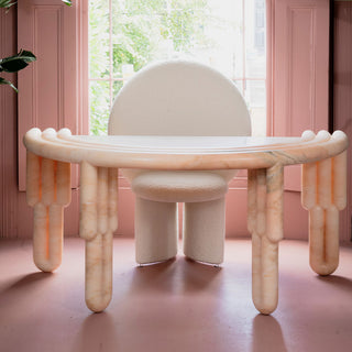 Afternoon Tea was exhibited for the first time in America in November 2021 and was introduced in Design Miami/’s Curio programme by curator Natalie Kovacs. The exhibition was Bohinc’s most revelatory and feminine work to date. Conceived during Bohinc’s time of isolation in London, these works are sculpted as functional fantasies, taking inspiration from sweet tactile rituals of ‘Afternoon Tea’ hence the title of the exhibition and this new body of work. “Materials play an important role in Lara’s practice - particularly with this playful edition of pieces. A departure from Lara’s geometric lexicon, this work expresses warmth through spherical language in a minimalistic form of optimism” says Natalie Kovacs. “The pandemic forced us all to spend more time at home, and I realised that I wanted my pieces to make you feel loved, cocooned and happy. I also wanted to create pieces that look like they are good enough to eat.” says Lara Bohinc.