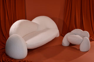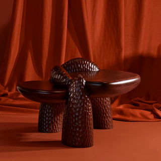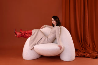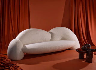 At the heart of the collection are three upholstered seating pieces—the Anima Sofa, Armchair, and Occasional Chair—created in collaboration with Maison Phelippeau, a revered French upholstery house known for its artisanal expertise. Handmade in London with a zero-carbon footprint, each piece is crafted entirely from natural materials, including Vanadium steel coils, horsehair, and wool, enveloped in pure alpaca wool by Inata, a sustainable French textile brand. The silhouettes, defined by soft curves and twin peaks with a central dip, subtly echo natural landscapes while evoking the subconscious symbolism of lips, adding a poetic depth to their sculptural elegance.