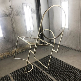 Finding inspiration in planetary orbits, whose gravitationally curved trajectories drive the lines and shapes of the designs. Constructed from thin square metal rods, the designs play with circles and straight lines to create pieces that are delicate, light but complex.